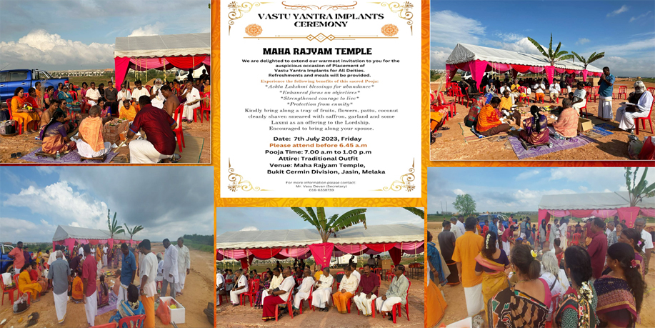 The Bhoomi Pooja for the construction of new temple was conducted on 6th March 2023 by His Grace Sri S. Ramanujam Muniandy Gurukal from Sri Renganathar Temple, Kajang, Selangor